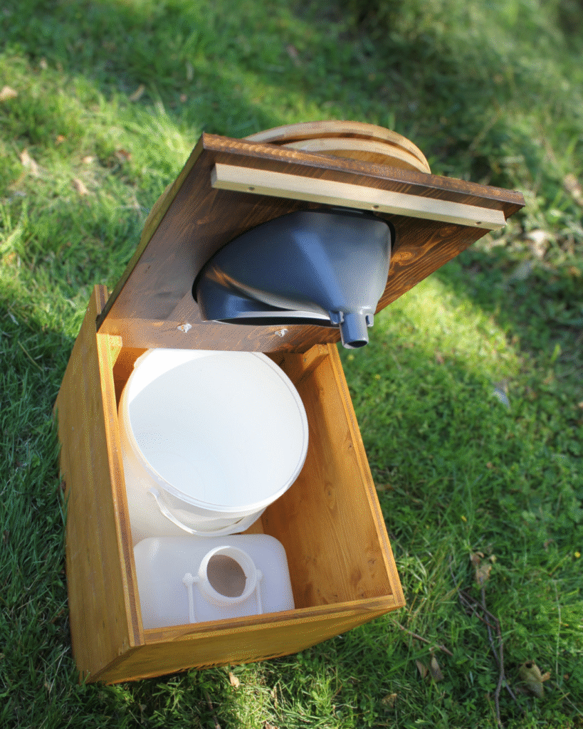 Das Prinzip ist simpel: Die kleinen und großen Geschäfte werden in der Toilette gesammelt und mit saugender Einstreu (zum Beispiel Holzspänen oder Hanfhäcksel) möglichst trocken gehalten, denn so können keine ungewollten Gerüche mit der Feuchtigkeit in die Luft ausgasen. Am einfachsten geht das, wenn man Fest und Flüssig direkt trennt. Dafür wird ein Einsatz unter der Klobrille verwendet. Der Urin läuft in einen Kanister, die Feststoffe landen in einem Behälter. Ohne Chemie, ohne Spülwasser.